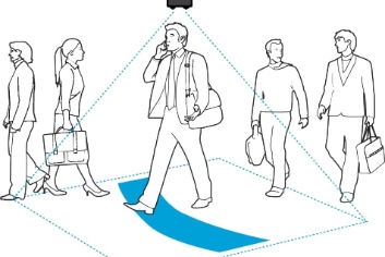 Personenerfassung und Auswertung, durch einen an der Decke angebrachten 3D-Sensor.